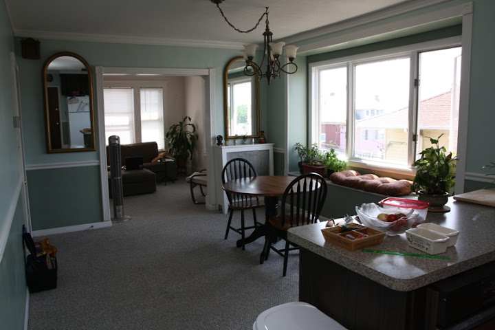 You get a little glimpse of the back door in this one. That leads out to a back stairwell that leads to the backyard and an enclosed deck we use as a closet for bulk items and sports equipment.